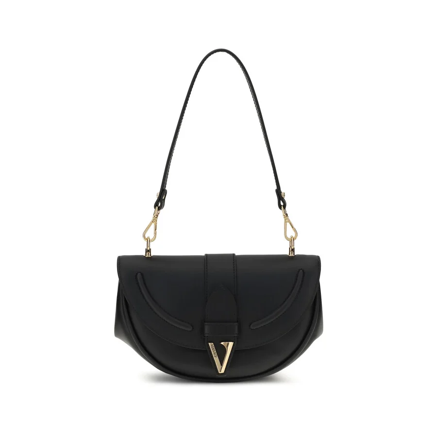 Versace Ladies Shoulder Bag. SKU: 10200881A16004_1B00V. Versace Medium Virtus Shoulder Bag. The medium virtus shoulder bag by versace embodies elegance and character with its iconic v-shaped accessory engraved with the versace logo. equipped with a front flap with magnetic closure, it features an interior pocket for essentials. the handle and shoulder strap, both removable and the second also adjustable, offer versatility of use, making this model perfect for both day and evening. Composition: 100% % Calf Leather Bos Taurus. GENERAL Brand Type: Designer INFORMATION Brand: Versace Gender: Womens Model: 10200881A16004_1B00V ADDITIONAL INFO UPC Code: 8054034583840 Jomashop Sku: Z-QHWGR Department: Bags Category: Shoulder Bag