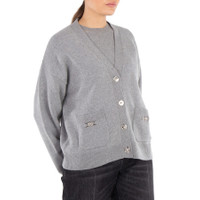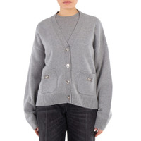 Versace Ladies Tops. Fashion category: Cardigans & Sweaters. SKU: 1013437-1A11287-CONCRETE MELANGE. Color: Concrete Melange. Versace Medusa 95 Knit Boxy Cardigan. This wool and cashmere-blend knit cardigan features a V-neckline, long sleeves, a front button closure, front patch pockets adorned with accent Medusa '95 hardware, and ribbed trims. 70% Pure virgin wool, 30% Cashmere. Made in Italy. GENERAL Color: Concrete Melange INFORMATION Brand: Versace Gender: Womens Model: 1013437-1A11287-CONCRETE MELANGE DETAILS Category: Tops Apparel Type: Cardigans & Sweaters Material: Cashmere, Wool ADDITIONAL INFO Jomashop Sku: -1287CONCRETEMELANGE Department: Clothing