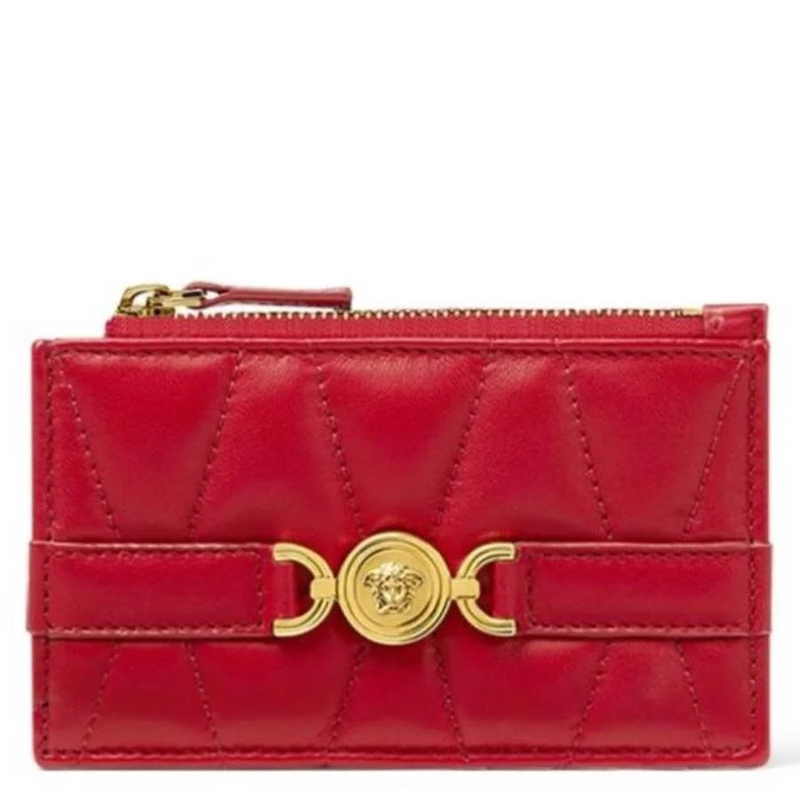 Versace Ladies Card Case. SKU: 1016227-1A12975. Color: Lipstick Red-Versace Gold. Size: L 5.1" x W 0.2" x H 3.1". Versace Medusa 95 Quilted Nappa Card Holder. This card holder is crafted from soft nappa leather with a V-quilting design and accented by the iconic Medusa ’95 hardware. It features a top zip closure and four back card slots, combining Versace’s signature style with practical functionality. 100% Lambskin. Made in Italy. GENERAL Size Info: L 5.1" x W 0.2" x H 3.1" Brand Type: Designer Color: Lipstick Red-Versace Gold INFORMATION Brand: Versace Gender: Womens Model: 1016227-1A12975-LIPSTICK RED-VERSAC DETAILS Material: Lambskin Occasion: Casual Closure: Zip-Up DIMENSIONS Size: Mini ADDITIONAL INFO UPC Code: 8053609934377 Jomashop Sku: Z-LX3TL Department: Bags Category: Card Case