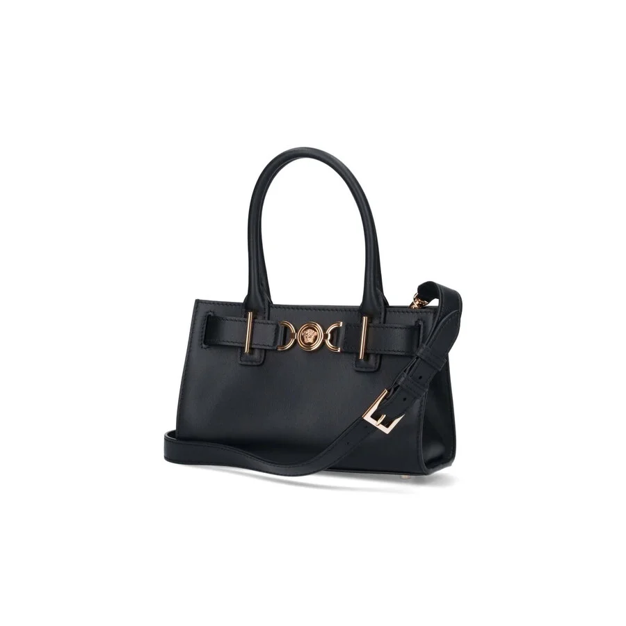 Versace Ladies Tote. SKU: 10131691A10795_1B00V. Color: Black. Versace medusa 95 Shopper Handbag. 100% Pelle. GENERAL Brand Type: Designer Color: Black INFORMATION Brand: Versace Gender: Womens Model: 10131691A10795_1B00V ADDITIONAL INFO Jomashop Sku: Z-4ASHR Department: Bags Category: Tote Bags