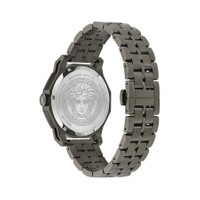 Grey stainless steel case and bracelet. Fixed grey stainless steel bezel. Grey dial with index hour markers. Dial Type: Analog. Quartz movement. Scratch resistant sapphire crystal. Pull / push crown. Solid case back. Round case shape, case size: 43 mm, case thickness: 11 mm. Band width: 20 mm. Water resistant at 50 meters / 165 feet. Functions: hour, minute. Medusa Deco Series. Casual watch style. Watch label: Swiss Made. Versace Medusa Deco Quartz Grey Dial Men's Watch VE9I00524. GENERAL Box Type: Original Box Brand Type: Designer CASE Case Thickness: 11 mm Case Material: Stainless Steel Case Shape: Round Case Back: Solid BAND Band Material: Stainless Steel Band Type: Bracelet Band Color: Grey Band Width: 20 mm DIAL Dial Color: Grey Type: Analog Crystal: Scratch Resistant Sapphire Dial Markers: Index Bezel: Fixed Bezel Color: Grey Bezel Material: Stainless Steel Crown: Pull / Push INFORMATION Brand: Versace Series: Medusa Deco Collection Name: Medusa Deco Gender: Mens Model: VE9I00524 Watch Label: Swiss Made Movement: Quartz FEATURES Water Resistance: 50 meters / 165 feet Functions: Hour, Minute Watch Features: Analog, Stainless Steel ADDITIONAL INFO Watch Style: Casual Warranty: 2 Year Jomashop Warranty Jomashop Sku: VER-VE9I00524 Department: Watches