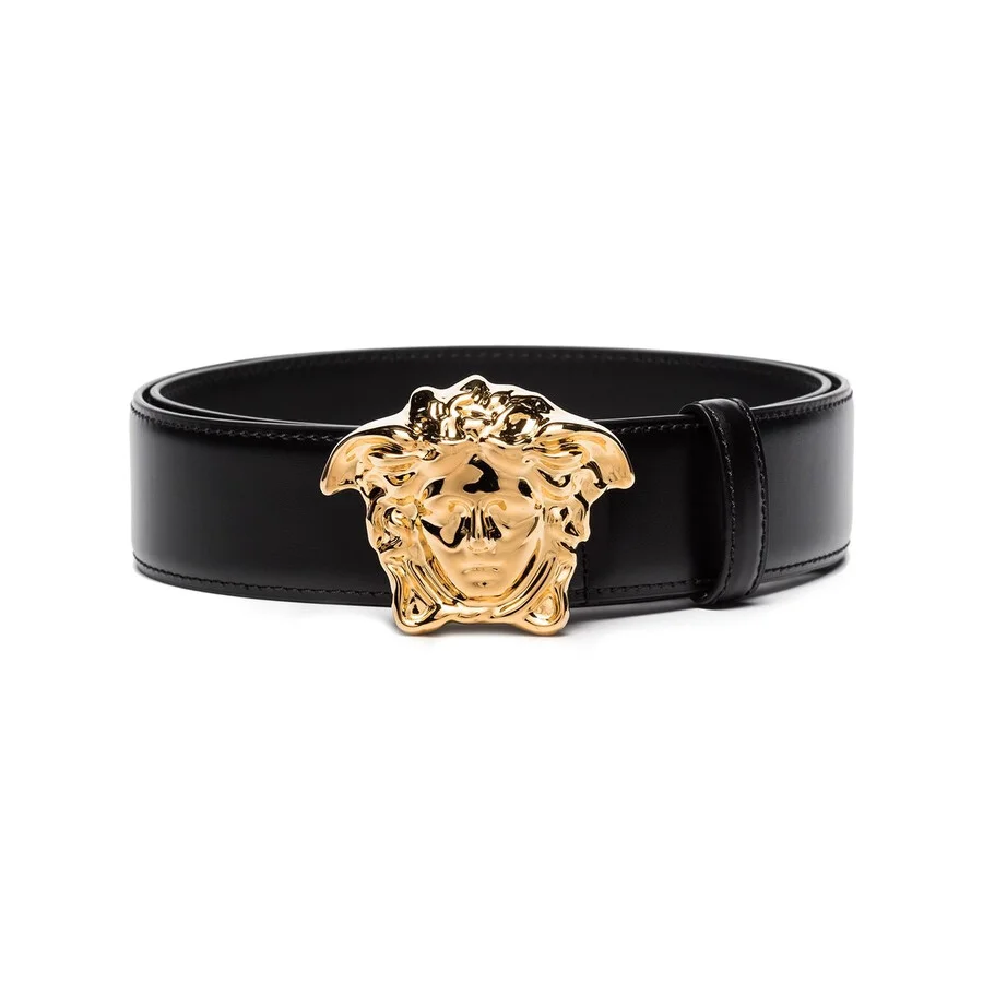 Versace Men's Belts. Fashion category: Belts. SKU: DCU4140-DVTP1-KVO41. Color: Black-Versace Gold. Versace Men's Black-Versace Gold La Medusa Leather Belt. This smooth leather belt features a metal Medusa buckle, a solid color and adjustable size. Calf Leather 100% Made in Italy. GENERAL Brand Type: Designer Ring Style: Fashion Gender: Mens Color: Black-Versace Gold Apparel Type: Belts INFORMATION Brand: Versace Model: DCU4140-DVTP1-KVO41 ADDITIONAL INFO Jomashop Sku: -DCU4140DVTP1KVO41 Department: Fashion Accessories Category: Belts