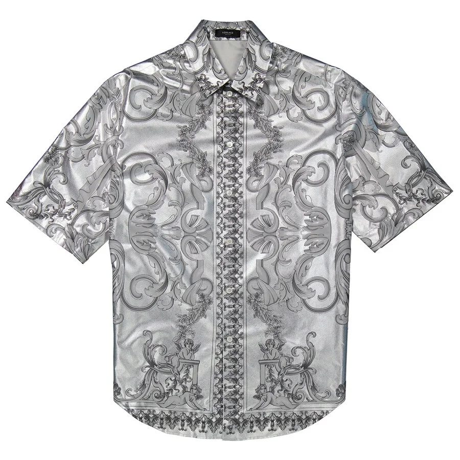 Versace Men's Silver / Black Silver Baroque Silk Shirt