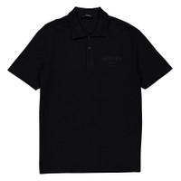 Versace Men's Tops. Fashion category: Shirts & Blouses. SKU: 1013906-1A10623-BLACK. Color: Black. Versace Milano Stamp Polo Shirt. This cotton shirt features a pique weave with a polo collar and signature Greca detailing. It is adorned with a Milano Stamp embroidered logo, short sleeves, and a straight hem. The shirt has a short front button fastening for a polished, yet casual look. Polyester 100%, Cotton 100% GENERAL Brand Type: Designer Color: Black INFORMATION Brand: Versace Gender: Mens Model: 1013906-1A10623-BLACK DETAILS Category: Tops Apparel Type: Shirts & Blouses Material: Cotton, Polyester ADDITIONAL INFO Jomashop Sku: -10139061A10623BLACK Department: Clothing