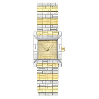 Silver-tone stainless steel case with a two-tone (silver-tone and gold-tone) stainless steel bracelet. Fixed two-tone (silver-tone and gold-tone) stainless steel bezel. Gold-tone dial with gold-tone hands and diamond hour markers. Dial Type: Analog. Quartz movement. Scratch resistant sapphire crystal. Pull / push crown. Solid case back. Rectangle case shape, case size: 22 mm. Deployment with push button release clasp. Water resistant at 30 meters / 100 feet. Functions: hour, minute. Mosaic Series. Dress watch style. Watch label: Swiss Made. Versace Mosaic Quartz Diamond Gold Dial Ladies Watch VE9B00424. GENERAL Box Type: Original Box Brand Type: Designer CASE Case Material: Stainless Steel Case Shape: Rectangle Case Back: Solid BAND Band Material: Stainless Steel Band Type: Bracelet Band Color: Two-tone (Silver-tone and Gold-tone) Clasp: Deployment with Push Button Release DIAL Dial Color: Gold-tone Type: Analog Crystal: Scratch Resistant Sapphire Hands: Gold-tone Dial Markers: Diamond Bezel: Fixed Bezel Color: Two-tone (Silver-tone and Gold-tone) Bezel Material: Stainless Steel Crown: Pull / Push INFORMATION Brand: Versace Series: Mosaic Collection Name: Mosaic Gender: Womens Model: VE9B00424 Watch Label: Swiss Made Movement: Quartz FEATURES Water Resistance: 30 meters / 100 feet Functions: Hour, Minute Watch Features: Analog, Gold, Stainless Steel, Diamond ADDITIONAL INFO Watch Style: Dress Warranty: 2 Year Jomashop Warranty Jomashop Sku: VER-VE9B00424 Department: Watches