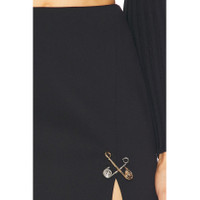 Versace Ladies Bottoms. Fashion category: Skirts. SKU: 1018816-1A12258-BLACK. Color: Black. Versace Safety Pin A-Line Wool Mini Skirt. This A-line stretch mini skirt is tailored from grain de poudre virgin wool and features a side slit accented with iconic Safety Pin hardware. Fully lined for a smooth fit, it’s finished with a concealed back zip closure for a polished look. 98% Pure virgin wool, 2% Elastane. GENERAL Brand Type: Designer Color: Black INFORMATION Brand: Versace Gender: Womens Model: 1018816-1A12258-BLACK DETAILS Category: Bottoms Apparel Type: Skirts Material: Elastane, Wool ADDITIONAL INFO Jomashop Sku: -10188161A12258BLACK Department: Clothing