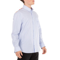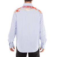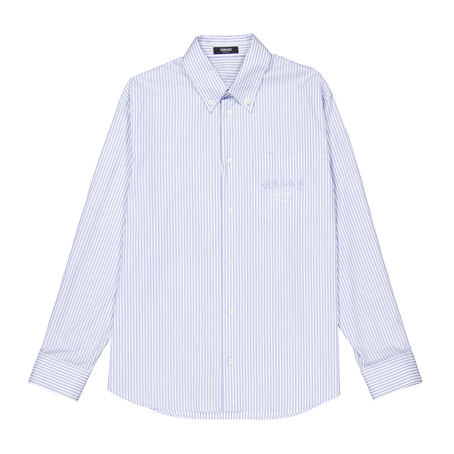 Versace Men's Tops. Fashion category: Casual Button-Downs. SKU: 1016210-1A11376-BLUE HYDRANGEA+CORA. Color: Blue Hydrangea/Coral/Bone. Versace Striped Barocco Sea Print Shirt. This striped cotton Oxford shirt features long sleeves, a button-down collar, a Barocco Sea print panel at the back with coral, seashell, and starfish motifs, an embroidered Versace Milano Stamp on the chest pocket, and is finished with a front button closure and buttoned cuffs. 100% Cotton. Made in Italy. GENERAL Color: Blue Hydrangea/Coral/Bone INFORMATION Brand: Versace Gender: Mens Model: 1016210-1A11376-BLUE HYDRANGEA+CORA DETAILS Category: Tops Apparel Type: Casual Button-Downs Material: Cotton ADDITIONAL INFO Jomashop Sku: -76BLUEHYDRANGEACORA Department: Clothing