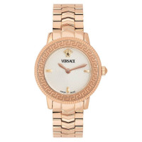 Rose gold-tone stainless steel case and bracelet. Fixed rose gold-tone stainless steel bezel. White dial with rose gold-tone hands and index hour markers. Dial Type: Analog. Quartz movement. Scratch resistant sapphire crystal. Pull / push crown. Solid case back. Round case shape, case size: 30 mm. Deployment clasp. Water resistant at 30 meters / 100 feet. Functions: hour, minute. V-icon Series. Casual watch style. Watch label: Swiss Made. Versace V-Icon Quartz White Dial Ladies Watch VEUCA0724. GENERAL Box Type: Original Box Brand Type: Designer CASE Case Size: 30 Case Material: Stainless Steel Case Shape: Round Case Back: Solid BAND Band Material: Stainless Steel Band Type: Bracelet Band Color: Rose Gold-tone Clasp: Deployment DIAL Dial Color: White Type: Analog Crystal: Scratch Resistant Sapphire Hands: Rose Gold-tone Dial Markers: Index Bezel: Fixed Bezel Color: Rose Gold-tone Bezel Material: Stainless Steel Crown: Pull / Push INFORMATION Brand: Versace Series: V-Icon Collection Name: V-Icon Gender: Womens Model: VEUCA0724 Watch Label: Swiss Made Movement: Quartz FEATURES Water Resistance: 30 meters / 100 feet Functions: Hour, Minute Watch Features: Analog, Gold, Stainless Steel ADDITIONAL INFO Watch Style: Casual Warranty: 2 Year Jomashop Warranty Jomashop Sku: VER-VEUCA0724 Department: Watches