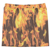 Vetements Ladies Bottoms. Fashion category: Skirts. SKU: WE52SK220F-FIRE. Color: Fire Print. Vetements Ladies Fire Print Mini Skirt. This mini skirt boasts a relaxed silhouette with an elasticized waistband for comfort and ease. It has a mini rounded hemline and is adorned with a striking fire print throughout, adding a bold and dynamic flair. 80% polyamide, 20% elastane. GENERAL Color: Fire Print INFORMATION Brand: Vetements Gender: Womens Model: WE52SK220F-FIRE DETAILS Category: Bottoms Apparel Type: Skirts ADDITIONAL INFO Jomashop Sku: -WE52SK220FFIRE Department: Apparel