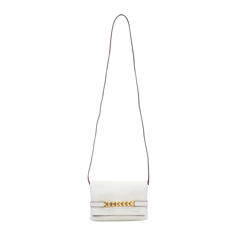 Victoria Beckham Ladies Shoulder Bag. SKU: B423AAC005135B-WHITE. Color: White. Size: L 2.75" X H 5.11" X W 7.08". Victoria Beckham Chain Strap Crossbody Bag. This bag features a logo stamp on the front, accented with chain-link detailing and tonal stitching. The gold-tone hardware and foldover top add a refined touch, while the adjustable shoulder strap offers versatility. Inside, it includes a logo patch and a spacious main compartment for your essentials. 100% Lamb Skin. GENERAL Size Info: L 2.75" X H 5.11" X W 7.08" Color: White INFORMATION Brand: Victoria Beckham Gender: Womens Model: B423AAC005135B-WHITE DETAILS Material: Lambskin ADDITIONAL INFO UPC Code: 5056290357237 Jomashop Sku: Z-YJ9PP Department: Bags Category: Shoulder Bag