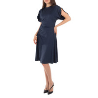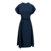 Victoria Beckham Ladies Dresses. Fashion category: Casual Dresses. SKU: 1324JDR005611A-MIDNIGHT. Color: Midnight. Victoria Beckham Crewneck Gathered Midi Dress. Crafted from a blend of polyester and elastane, this dress features a regular fit, mid-length design, crew neck, and short sleeves. It has an elasticated waistband, ruched detailing, is unlined, and finishes with a straight hem. 90% Polyester, 10% Elastane. GENERAL Color: Midnight INFORMATION Brand: Victoria Beckham Gender: Womens Model: 1324JDR005611A-MIDNIGHT DETAILS Category: Dresses Apparel Type: Casual Dresses Material: Elastane, Polyester ADDITIONAL INFO Jomashop Sku: -4JDR005611AMIDNIGHT Department: Clothing