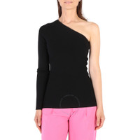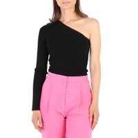Victoria Beckham Ladies Black One Shoulder Ribbed Top