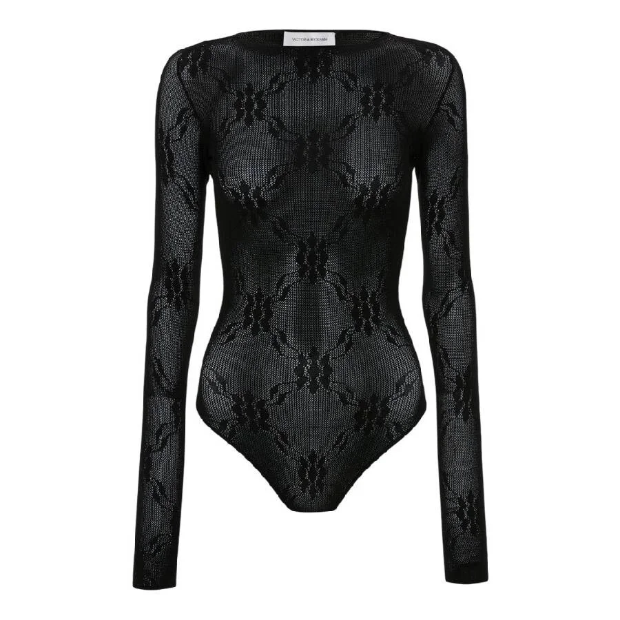 Victoria Beckham Ladies Tops. Fashion category: Bodysuits. SKU: 1225KTP006367A. Color: Black. Victoria Beckham Long-Sleeve Backless Bodysuit. Modern and alluring, this bodysuit features a slash neckline, long sleeves with thumbholes, and a fully exposed back with knitted trim. Crafted in sheer lace pointelle knit, it closes with adjustable snap fastenings for a comfortable fit. Composition: 83% Viscose, 17% Nylon. GENERAL Color: Black INFORMATION Brand: Victoria Beckham Gender: Womens Model: 1225KTP006367A-BLACK DETAILS Category: Tops Apparel Type: Bodysuits ADDITIONAL INFO Jomashop Sku: -1225KTP006367ABLACK Department: Clothing