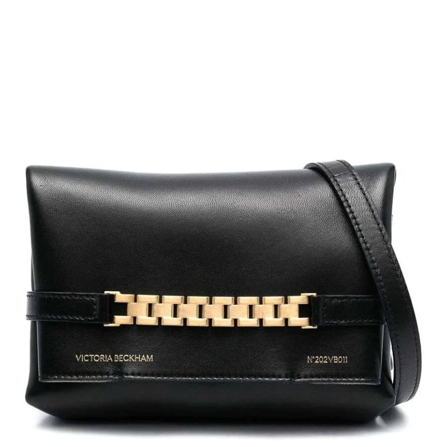 Victoria Beckham Ladies Shoulder Bag. SKU: B423AAC005135B-BLACK. Color: Black. Size: L 4.72" X H 7.28" X W 3.15". Victoria Beckham Mini Chain-Detail Pouch Bag. Crafted from black leather, this pouch is accented with gold-tone hardware and a logo print on the front. It features chain-link detailing, an adjustable, detachable shoulder strap, and a foldover top that opens to reveal a spacious main compartment. Material: 100% Leather. Made in Italy. GENERAL Size Info: L 4.72" X H 7.28" X W 3.15" Color: Black INFORMATION Brand: Victoria Beckham Gender: Womens Model: B423AAC005135B-BLACK DETAILS Material: Leather ADDITIONAL INFO UPC Code: 5056290357220 Jomashop Sku: Z-2N2NA Department: Bags Category: Shoulder Bag