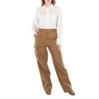 Victoria Beckham Ladies Bottoms. SKU: 1324WTR005597B-TOBACCO. Color: Tobacco. Victoria Beckham Relaxed Cargo Trousers. These loose-fitting cargo trousers feature a fly front with zip closure and a waistband with 5 belt loops. They are designed with cargo-style pockets on the sides and additional details such as red contrast bar tacks on the left back pocket flap, a welt pocket with white contrast stitching on the right back, and dart detailing on the knees. With a relaxed fit, the trousers also feature a zip fly with hook and bar closure and a 6-pocket design. 100% cotton. Made in Lithuania. GENERAL Color: Tobacco INFORMATION Brand: Victoria Beckham Gender: Womens Model: 1324WTR005597B-TOBACCO DETAILS Category: Bottoms Apparel Type: Pants & Leggings Material: Cotton ADDITIONAL INFO Jomashop Sku: -24WTR005597BTOBACCO Department: Clothing