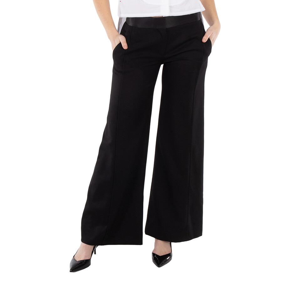 Brand: Victoria Beckham. Fashion category: Pants & Leggings. SKU: 1424WTR004763I-BLACK. Color: Black. Victoria Beckham Satin-Trim Trousers. These trousers feature satin trim, a concealed front button, hook, and zip fastening, and two diagonal side pockets. They also have pleat detailing, two rear welt pockets, and a wide-leg fit. Polyester 55%, Virgin Wool 45% GENERAL Color: Black INFORMATION Brand: Victoria Beckham Gender: Womens Model: 1424WTR004763I-BLACK DETAILS Category: Bottoms Apparel Type: Pants & Leggings Material: Polyester, Wool ADDITIONAL INFO Jomashop Sku: -1424WTR004763IBLACK Department: Clothing