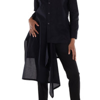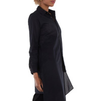 Yohji Yamamoto Ladies Tops. Fashion category: Shirts & Blouses. SKU: FS-B68-037-01. The Yohji Yamamoto asymmetric long blouse combines avant-garde design with timeless elegance. Featuring a classic collar and a front button fastening, it is elevated by a logo print at the rear for a subtle statement. Long, buttoned-cuff sleeves and an asymmetric hem add fluidity and modernity to its silhouette, making it a versatile and striking piece. Rayon 100%, Cotton 100%, Polyester 100%. Made in Japan. INFORMATION Brand: Yohji Yamamoto Gender: Womens Model: FS-B68-037-01 DETAILS Category: Tops Apparel Type: Shirts & Blouses Material: Cotton ADDITIONAL INFO Jomashop Sku: -FSB6803701 Department: Clothing