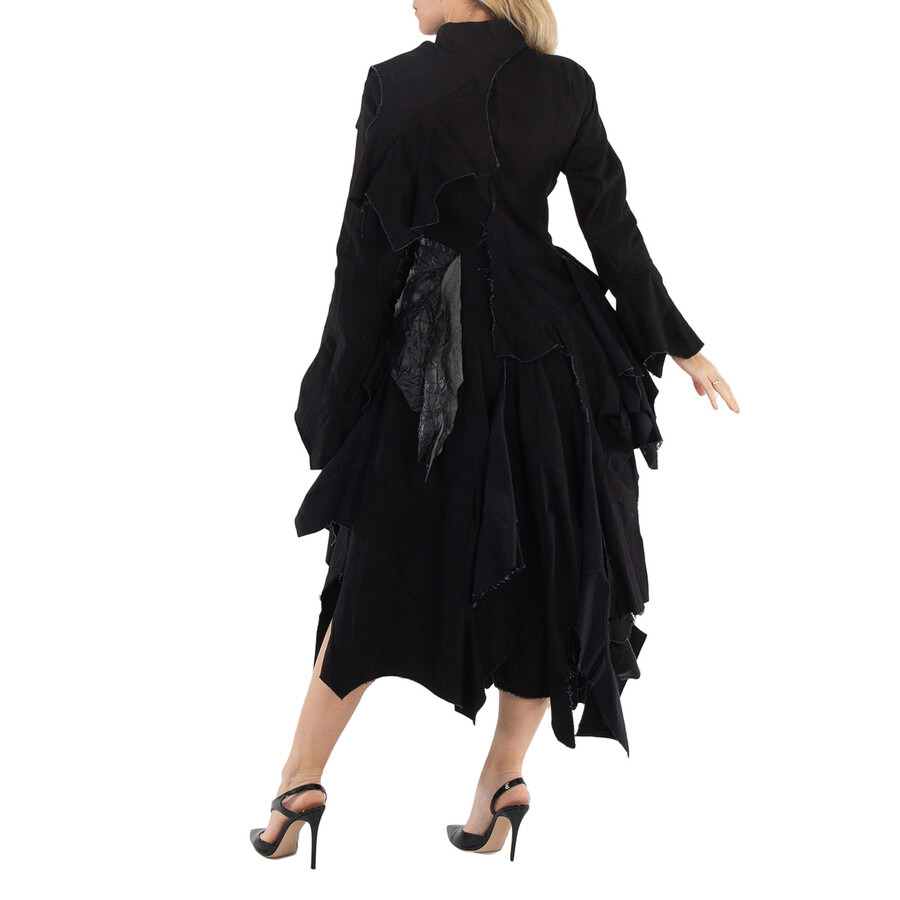 Yohji Yamamoto Ladies Dresses. SKU: FJ-D11-813-01. Color: Black. Size: Small. Yohji Yamamoto Black Multi Layered D Collar Dress. This Yohji Yamamoto dress embodies the designer's signature avant-garde aesthetic, featuring a deconstructed silhouette with asymmetrical layers. The dress is crafted in deep black fabric, combining smooth, flowing materials with textured, raw-edged sections. The irregular hemlines and stitched leather patches contribute to the piece's undone, rebellious look, while the loose sleeves and collar create a dramatic, almost sculptural shape. GENERAL Size Info: Small Clothing Size: Ladies Apparel Size: S Color: Black INFORMATION Brand: Yohji Yamamoto Gender: Womens Model: FJ-D11-813-01 DETAILS Category: Dresses ADDITIONAL INFO Jomashop Sku: Z-XZPPY Department: Clothing
