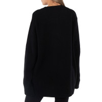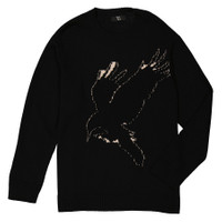 Ys Black Wool Crow Motif Long-Sleeved Pullover, Brand Size 2 (Medium)