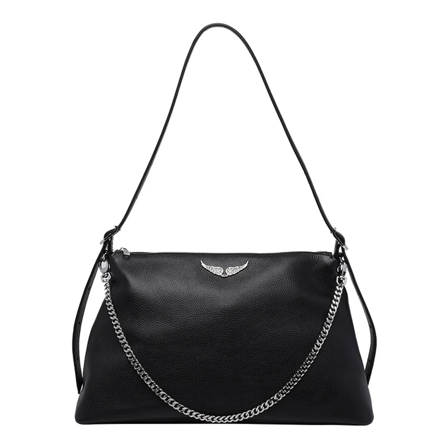Zadig & Voltaire Ladies Shoulder Bag. SKU: LWBA04310011. Color: Black. Size: 24x39x13 cm. Zadig Voltaire Jim Shoulder Bag. Zadig&Voltaire black Jim shoulder bag, zip closure, inner open pocket, removable chain strap, frontal logo. Composition: 100% Calf Leather GENERAL Size Info: 24x39x13 cm Brand Type: Designer Color: Black INFORMATION Brand: Zadig & Voltaire Gender: Womens Model: LWBA04310011 ADDITIONAL INFO Jomashop Sku: Z-BB5W6 Department: Bags Category: Shoulder Bag