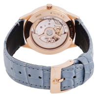 18kt rose gold case with a blue jean alligator leather strap. Fixed 18kt rose gold bezel. Silver dial with rose gold hands and index hour markers. Dial Type: Analog. One subdial displaying: one- small seconds. Zenith Calibre 692 automatic movement. Scratch resistant sapphire crystal. Pull / push crown. Round case shape, case size: 36 mm. Water resistant at 50 meters / 165 feet. Functions: hour, minute, second, moonphase indication. Luxury watch style. Watch label: Swiss Made. Zenith Automatic Silver Dial Ladies Watch 22.3200.692/01.C832. GENERAL Box Type: Original Box CASE Case Diameter: 36 Case Material: 18kt Rose Gold Case Shape: Round BAND Band Material: Alligator Leather Band Type: Strap Band Color: Blue Jean DIAL Dial Color: Silver Type: Analog Crystal: Scratch Resistant Sapphire Hands: Rose Gold Dial Markers: Index Sub Dials: One- Small Seconds Bezel: Fixed Bezel Material: 18kt Rose Gold Crown: Pull / Push INFORMATION Brand: Zenith Gender: Womens Model: 22.3200.692/01.C832 Watch Label: Swiss Made Movement: Automatic Engine: Zenith Calibre 692 FEATURES Water Resistance: 50 meters / 165 feet Functions: Hour, Minute, Second, Moonphase Indication Watch Features: Alligator Leather, Analog, Gold, Leather, Diamond ADDITIONAL INFO Watch Style: Luxury Warranty: 3 Year Jomashop Warranty Jomashop Sku: ZE22320069201C832 Department: Watches Category: Watches