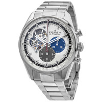 Stainless steel case with a stainless steel bracelet. Fixed stainless steel bezel. Silver (cutaway) dial with luminous silver-tone hands and index hour markers. Minute markers. Tachymeter markings around the outer rim. Dial Type: Analog. Luminescent hands and markers. Chronograph - two sub-dials displaying: 12 hour and 30 minute. Zenith calibre El Primero 4061 automatic movement, based upon Zenith El Primero 400, containing 31 Jewels, composed of 282 parts, bitting at 36000 vph, and has a power reserve of approximately 50 hours. Scratch resistant sapphire crystal. Pull / push crown. Transparent case back. Round case shape. Case size: 43 mm. Case thickness: 14.05 mm. Band width: 22 mm. Fold over clasp with a push button release. Water resistant at 100 meters / 330 feet. Functions: chronograph, column wheel, hour, minute, small second. Chronomaster El Primero Series. Dress watch style. Watch label: Swiss Made. Zenith El Primero Chronomaster 1969 Silver Dial Men's Watch 03.2040.4061/69.M2040. CASE Case Size: 43 Case Thickness: 14.05 mm Case Material: Stainless Steel Case Shape: Round Case Back: Transparent BAND Band Material: Stainless Steel Band Type: Bracelet Band Color: Silver-tone Band Width: 22 mm Clasp: Fold Over with Push Button Release DIAL Dial Color: Silver (Cutaway) Type: Analog Crystal: Scratch Resistant Sapphire Hands: Luminous Silver-tone Dial Markers: Index Second Markers: Minute Markers. Tachymeter Markings around the outer rim Sub Dials: Two - 12 Hour and 30 Minute Luminiscence: Hands and Markers Bezel: Fixed Bezel Color: Silver-tone Bezel Material: Stainless Steel Crown: Pull / Push INFORMATION Brand: Zenith Series: Chronomaster El Primero Collection Name: Chronomaster El Primero Gender: Mens Model: 03.2040.4061/69.M2040 Watch Label: Swiss Made Movement: Automatic Engine: Zenith Calibre El Primero 4061 Power Reserve: 50 hours FEATURES Water Resistance: 100 meters / 330 feet Functions: Chronograph, Column Wheel, Hour, Minute, Small Second Watch Features: Chronograph, Stainless Steel, Analog ADDITIONAL INFO Watch Style: Dress Warranty: 3 Year Jomashop Warranty Jomashop Sku: ZE032040406169M2040 Department: Watches Category: Watches