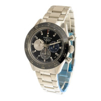 Silver-tone stainless steel case and bracelet. Fixed black ceramic bezel. Black dial with luminous silver-tone hands and index hour markers. 1/10th of a second indication. Dial Type: Analog. Luminescent hands and markers. Date display between 4 and 5 o'clock position. Chronograph - three sub-dials displaying: 60 second, 60 minute and 1/10th of a second. Zenith Calibre El Primero 3600 Automatic movement, containing 35 Jewels, composed of 311 parts, bitting at 36000 vph, and has a power reserve of approximately 60 hours. Scratch resistant sapphire crystal. Pull / push crown. Transparent case back. Round case shape, case size: 41 mm, case thickness: 13.6 mm. Folding with safety latch clasp. Water resistant at 100 meters / 330 feet. Functions: chronograph, column wheel, date, hour, minute, small second, chronometer. El Primero Chronomaster Sport Series. Luxury watch style. Watch label: Swiss Made. Zenith El Primero Chronomaster Sport Chronograph Automatic Black Dial Men's Watch 03.3100.3600/21.M3100. INFORMATION Brand: Zenith Series: El Primero Chronomaster Sport Collection Name: El Primero Chronomaster Sport Gender: Mens Model: 03.3100.3600/21.M3100 Watch Label: Swiss Made Movement: Automatic Engine: Zenith Calibre El Primero 3600 Power Reserve: 60 hours CASE Case Size: 41 mm Case Thickness: 13.6 mm Case Material: Stainless Steel Case Shape: Round Case Back: Transparent BAND Band Material: Stainless Steel Band Type: Bracelet Band Color: Silver-tone Clasp: Folding Clasp With Safety Latch DIAL Dial Color: Black Type: Analog Crystal: Scratch Resistant Sapphire Hands: Luminous Silver-tone Dial Markers: Index Second Markers: 1/10th of a Second Indication Sub Dials: Three - 60 Second, 60 Minute and 1/10th of a Second Luminiscence: Hands and Markers Bezel: Fixed Bezel Color: Black Bezel Material: Ceramic Crown: Pull / Push FEATURES Water Resistance: 100 meters / 330 feet Calendar: Date display between 4 and 5 o'clock position Functions: Chronograph, Column Wheel, Date, Hour, Minute, Small Second, Chronometer Watch Features: Chronograph, Stainless Steel, Ceramic, Chronometer, Analog ADDITIONAL INFO Watch Style: Luxury Warranty: 3 Year Jomashop Warranty Jomashop Sku: ZE033100360021M3100 Department: Watches Category: Watches