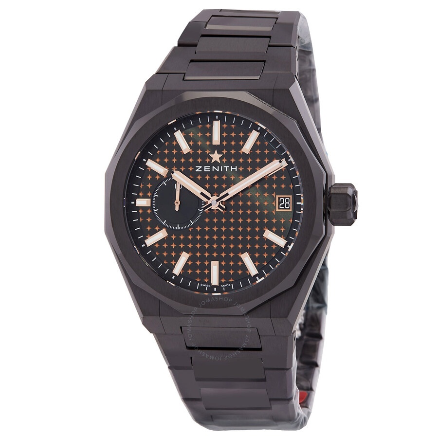 Black ceramic case and bracelet. Fixed black ceramic bezel. Green dial with rose gold-tone hands and index hour markers. Dial Type: Analog. Luminescent hands and markers. Date display at the 3 o'clock position. One subdial displaying: 1/10th of a second. Zenith Calibre El Primero 3620 automatic movement with a 60-hour power reserve. Scratch resistant sapphire crystal. Octagonal case shape, case size: 41 mm. Water resistant at 100 meters / 330 feet. Functions: date, hour, minute, 1/10th of a second. Defy Skyline Series. Luxury watch style. Watch label: Swiss Made. Zenith Limited Edition Defy Skyline Automatic Green Dial Men's Watch 49.9308.3620/56.I001. CASE Case Size: 41 Case Material: Ceramic BAND Band Material: Ceramic Band Type: Bracelet Band Color: Black DIAL Dial Color: Green Type: Analog Crystal: Scratch Resistant Sapphire Hands: Rose Gold-tone Dial Markers: Index Sub Dials: One - 1/10th of a Second Luminiscence: Hands and Markers Bezel: Fixed Bezel Color: Black Bezel Material: Ceramic INFORMATION Brand: Zenith Series: Defy Skyline Collection Name: Defy Skyline Gender: Mens Model: 49.9308.3620/56.I001 Watch Label: Swiss Made Movement: Automatic Engine: Zenith Calibre El Primero 3620 Power Reserve: 60 hours FEATURES Water Resistance: 100 meters / 330 feet Calendar: Date display at the 3 o'clock position Functions: Date, Hour, Minute, 1/10th of a second Watch Features: Gold, Ceramic, Analog ADDITIONAL INFO Watch Style: Luxury Warranty: 3 Year Jomashop Warranty Jomashop Sku: ZE499308362056I001 Department: Watches