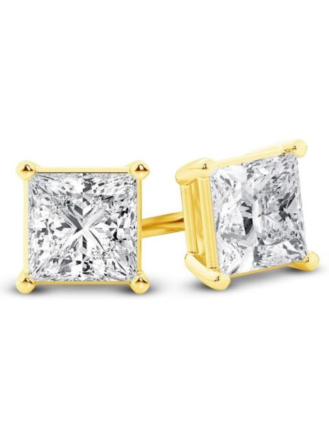Brilliant Diamond 14K Yellow Gold IGI Certified 0.50 Carat Princess Cut Lab Grown Diamond Stud Earri