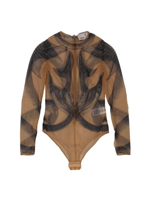 Burberry Ladies Mermaid Tail-Print Tulle Long Sleeve Bodysuit