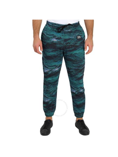 Burberry Men's Deep Teal Tape Detail Sea Print Cotton Trackpants