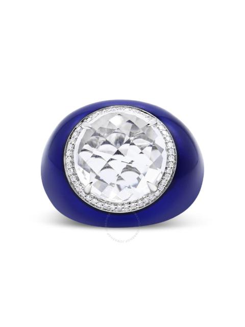 Haus of Brilliance 18K White Gold 14mm White Quartz and 1/5 Cttw Diamond Halo with Blue Enamel Dome