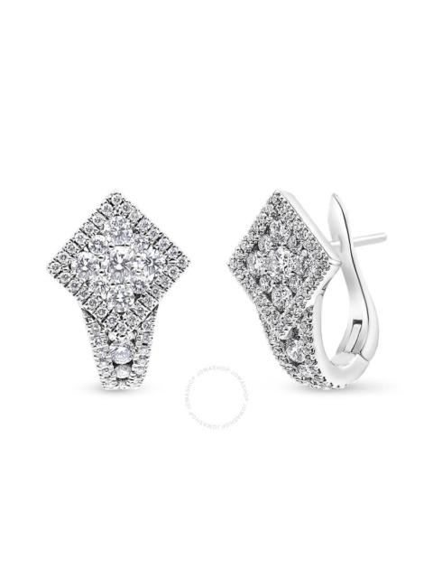 Haus of Brilliance 18K White Gold 1 1/10 Cttw Round Diamond Cluster with Halo Hoop Huggie Earring (F
