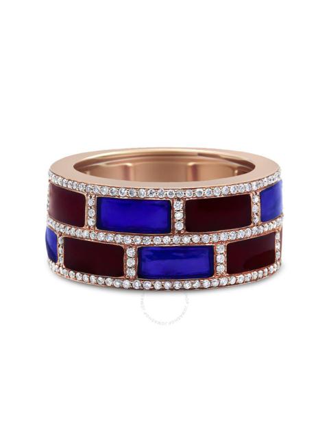 Haus of Brilliance 18K Rose Gold Alternating Red and Blue Enamel and 1/2 Cttw Diamond Studded Band R