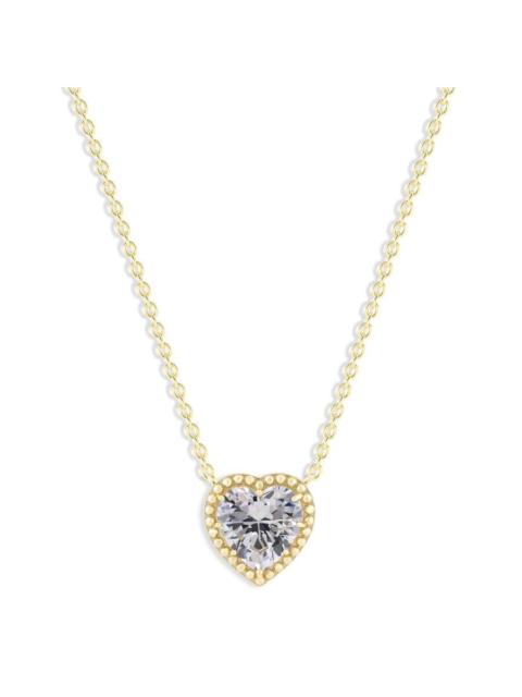 DiamondMuse Belacqua White Zircon April Birthstone Heart Pendant Necklace in 14K Gold Plated Sterlin