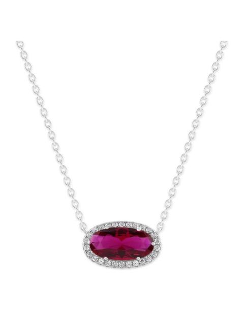 DiamondMuse Belacqua Siam Ruby July Birthstone Halo Pendant Necklace in Sterling Silver, Oval Cut 6*