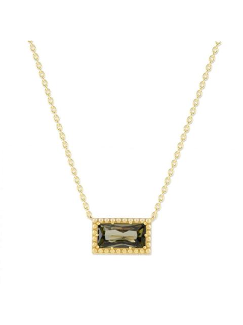 DiamondMuse Belacqua Peridot August Birthstone Baguette Pendant Necklace in 14K Gold Plated Sterling