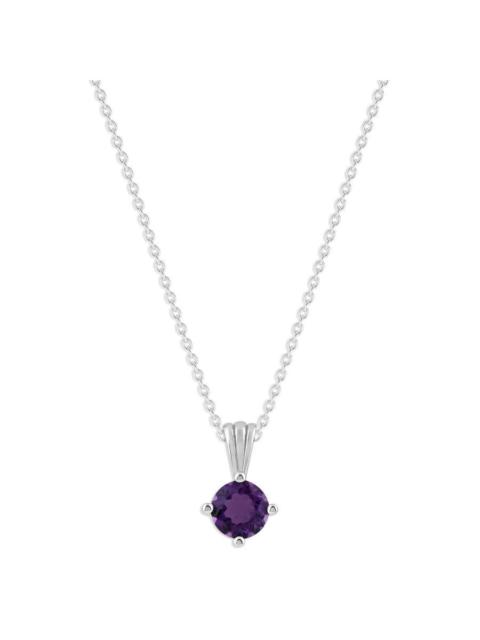DiamondMuse Belacqua Amethyst February Birthstone Round Pendant Necklace in Sterling Silver