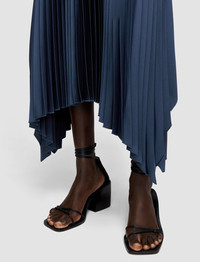 The Ade Knit Weave Plisse Skirt is a pleated midi skirt, with a statement a-symetric hem. This fluid skirt is crafted from a crepe yarn which offers a smooth, silk-like hand feel. Elegant and versatile, this piece can easily be dressed up or down. - A-line - High-rise - Mid-length - A-symmetric hem - Elasticated waistband - Product code: jf0089711403 - Harbour Blue SIZE ADVICE - Regular length 80cm - 83cm - Shorter length 72cm - 75cm - Model wears size FR 36/UK 8/EU 34/US 4/DE 34/IT 40/JP 7 CARE & MATERIALS - 100% Polyester - Do not wash - Do not bleach - Do not tumble dry - Iron low temperature setting - Dry clean