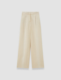 The Alanel Embroidered Stripes Trousers are a high-rise, wide leg trouser, crafted from a viscose blend. These striking trousers showcase exceptional craftsmanship through its striped embroidery and the relaxed-tailored silhouette. They feature an elasticated waistband at the back for comfort. Model wears size FR 38/UK 10/EU 36/US 6/DE 36/IT 42/JP 9 Details - Wide leg - High-rise - Full-length - Front pleat - Side pockets - Elasticated waistband at the back - Regular outer leg length 113cm - 116cm - Shorter outer leg length 102cm - 105cm - Product code: jf0093582272 Care & Materials - 3% Linen 97% Viscose - Do not wash - Do not bleach - Do not tumble dry - Iron low temperature setting - Dry clean