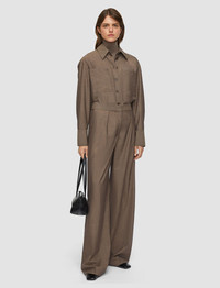 The Alanel Light Wool Tailoring Trousers are a high-rise, wide leg trouser, crafted from 100% virgin wool. These trousers are luxuriously smooth and lightweight, and offer a relaxed, tailored look. They're finished with an elasticated waistband at the back for comfortable wear. Model wears size FR 36/UK 8/EU 34/US 4/DE 34/IT 40/JP 7 Details - Lightweight tailoring - Wide leg - High-rise - Full-length - Front pleat - Side pockets - Elasticated waistband at the back - Regular outer leg length 113cm - 116cm - Shorter outer leg length 102cm - 105cm - Product code: jf0094062202 Care & Materials - 100% Virgin Wool - Do not wash - Do not tumble dry - Iron low temperature setting - Do not bleach - Dry clean