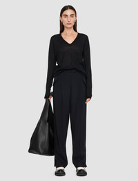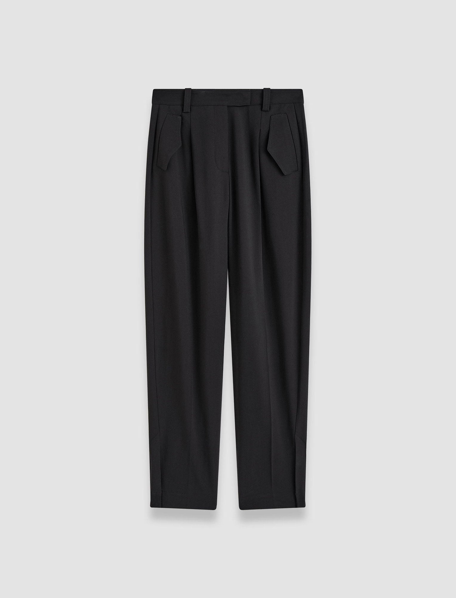 The Alexis Fluid Twill Wool Trousers are a wide, tapered leg trouser, crafted from a luxurious blend of viscose and merino wool. These trousers offer a relaxed, fluid silhouette. They feature tailored flap pockets and vents at the hem with buttons. - Wide tapered leg - Mid-rise - Full-length - Front pleats - Tailored flap pocket - Hem vents with buttons - Product code: jp0017040010 - Black SIZE ADVICE - Model wears size FR 36/UK 8/EU 34/US 4/DE 34/IT 40/JP 7 CARE & MATERIALS Discover the Care Guide, a guide to help you to care for your garments. - 60% Viscose 40% Virgin wool - Do not wash - Do not bleach - Do not tumble dry - Iron low temperature setting - Dry clean