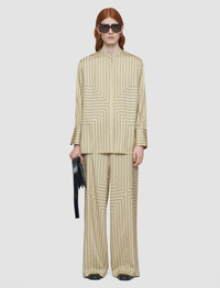 The Athena Geometric Print Silk Blouse is a relaxed fit style. Crafted from a blend of silk and viscose for a lustrous and fluid look. This blouse features an understated geometric pattern. Its stand collar, hidden placket and wide cuffs deliver a clean, elegant look. Model wears size FR 36/UK 8/EU 34/US 4/DE 34/IT 40/JP 7 Details - Designed for a relaxed fit - Hidden placket - Stand collar - Wide cuffs - Side slits - Product code: jf0093642271 Care & Materials - 47% Silk 44% Viscose 9% Spandex - Do not wash - Do not bleach - Do not tumble dry - Iron low temperature setting - Dry clean
