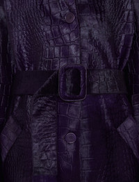 The Auger Embossed Croc Leather Coat is a regular fit trench coat, crafted from 100% leather. This statement coat exudes luxury with its embossed crocodile pattern and smooth, pony-haired texture. It's finished with a classic collar, slanted welt pockets and cuff tabs for a sharp, elegant look. Model wears size FR 38/UK 10/EU 36/US 6/DE 36/IT 42/JP 9 Details - Designed for a regular fit - Embossed crocodile pattern - Slanted welt pockets - Removable belt - Cuff tabs - Lined - Product code: jf0095181501 Care & Materials - 100% Cow leather - Do not wash - Do not bleach - Do not iron - Do not tumble - Do not dry clean - Cleaning by a leather specialist only
