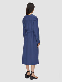 The Bolero Silk Crepe de Chine Dress is a relaxed fit, belted dress, crafted from a lightweight silk crepe with has a smooth, crisp hand feel. Its neckline features versatile ties which can be styled to the front or back. Finished with gathered detailing at the shoulders, back and cuffs for an elegant look. - Designed for a relaxed fit - Mid-length - Neckline ties - Gathered detailing - Removable belt - Product code: jf0089681403 - Harbour Blue SIZE ADVICE - Model wears size FR 36/UK 8/EU 34/US 4/DE 34/IT 40/JP 7 CARE & MATERIALS Discover the Care Guide, a guide to help you to care for your garments. - 100% Silk - Machine wash, wool/ silk program wash, very gentle spin - Do not bleach - Do not tumble dry - Iron low temperature setting - Dry clean