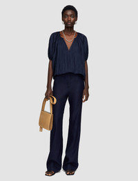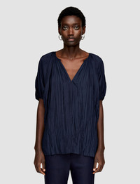 The Habotai Silk Briela Blouse is a relaxed fit blouse, crafted from 100% habotai silk which is renowned for its lightness, sheen and silky hand feel. This blouse features voluminous short sleeves, a small opening with a button at the neckline and a crinkled texture. Model wears size FR 36/UK 8/EU 34/US 4/DE 34/IT 40/JP 7 Details - We are recommending a size down - 100% silk - Designed for a relaxed fit - Voluminous short sleeves - Front opening with button - Crinkled texture - Product code: jf0090890370 - Navy Care & Materials - 100% Silk - Machine wash, wool/ silk program wash, very gentle spin - Do not bleach - Do not tumble dry - Do not iron - Do not dry clean - Dry twisted to restore the garment's crinkled texture