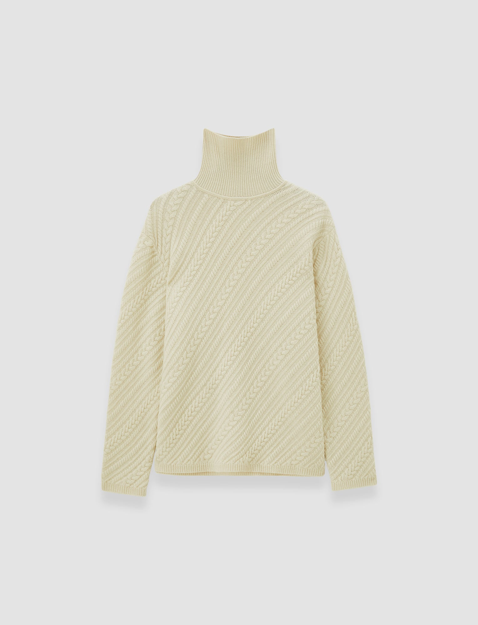 The Cable Knit Wool Jumper is a relaxed fit style, crafted from merino wool. An effortless addition to your wardrobe, this luxurious jumper delivers on warmth, an ultra-soft hand feel and a timeless cable knit pattern. Model wears size M Details - 100% merino wool - Designed for a relaxed fit - Ribbed high neck - Dropped shoulders - Product code: jf0093320045 Care & Materials - 100% Merino wool - Machine wash, cycle hand wash, wool/silk program wash, very gentle spin - Do not bleach - Do not tumble dry - Iron low temperature setting - Dry clean - Use a wool shampoo - Put in a laundry bag - Wash inside out with similar colours - Dry flat - Iron inside out