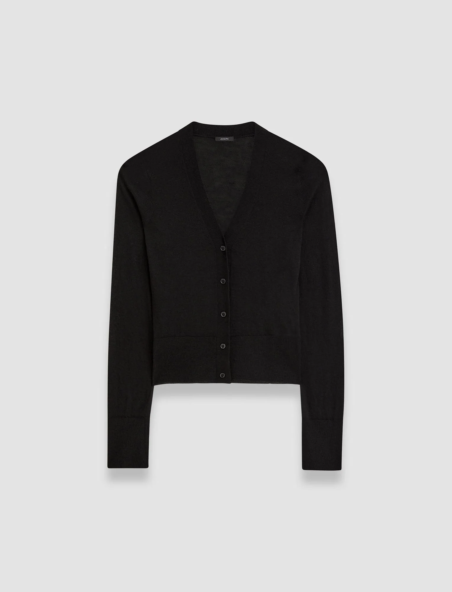 The Cashair Cardigan is a slim fit, short cardigan, crafted from 100% cashmere. This piece is semi sheer, lightweight and delicate, finished with a ribbed hem and cuffs. - 100% cashmere - Designed for a slim fit - Semi sheer - Lightweight knit - Product code: jf0085410010 SIZE ADVICE - Model wears size S CARE & MATERIALS Discover the Care Guide, a guide to help you to care for your garments. - 100% Cashmere - Machine wash, cycle hand wash, very gentle spin - Do not bleach - Do not tumble dry - Iron low temperature setting - Dry clean mild - Use a wool shampoo - Put in a laundry bag - Wash inside out with similar colours - Dry flat - Iron inside out