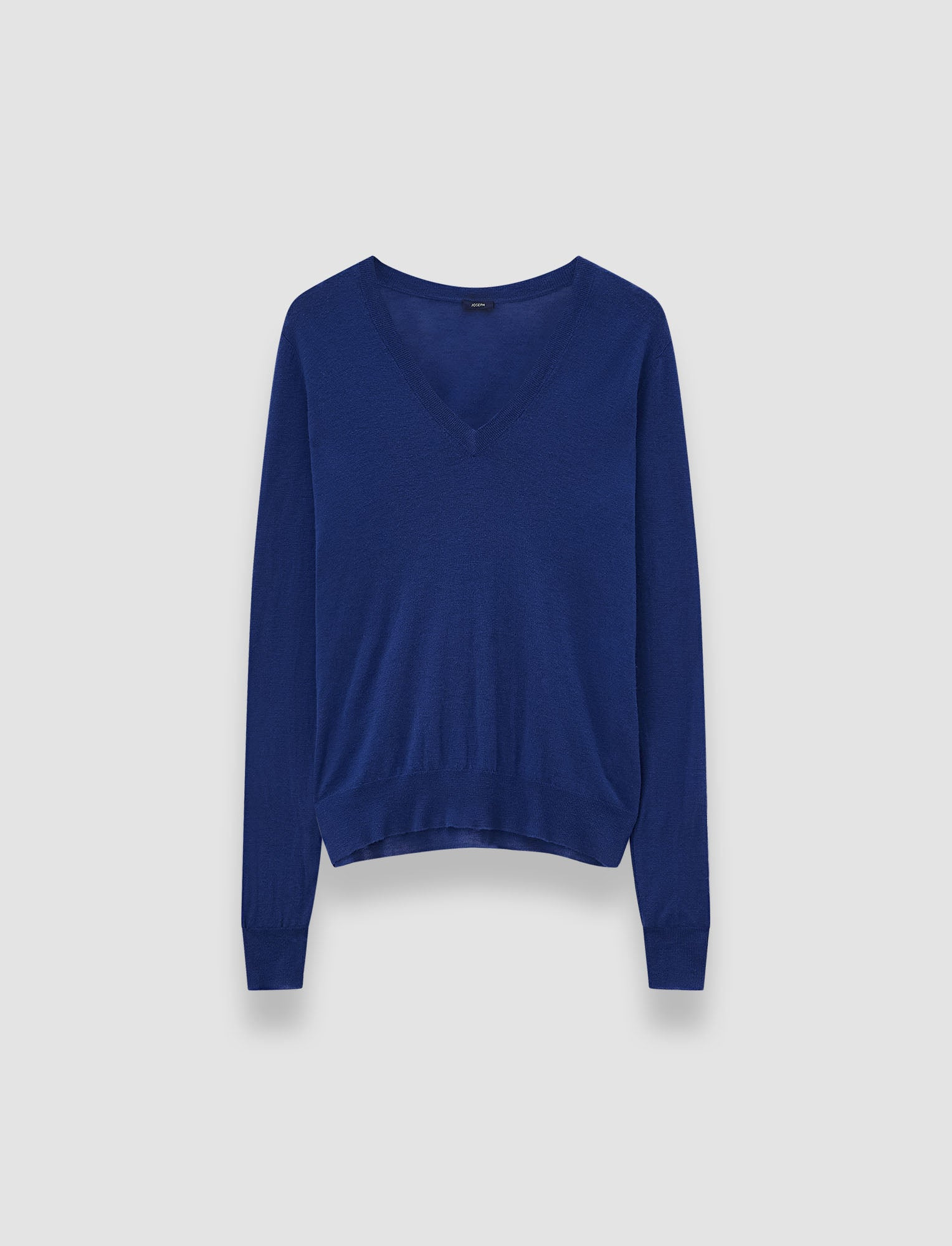 The Cashair V Neck Jumper is a relaxed fit, lightweight knit jumper, crafted from 100% cashmere. This JOSEPH signature knit is soft, delicate and semi sheer, finished with a ribbed neckline, hem and cuffs. Model wears size S Details - 100% cashmere - Designed for a relaxed fit - Semi sheer - Lightweight knit - Product code: jf0092501410 Care & Materials - 100% Cashmere - Machine wash, cycle hand wash, very gentle spin - Do not bleach - Do not tumble dry - Iron low temperature setting - Dry clean - Use a wool shampoo - Put in a laundry bag - Wash inside out with similar colours - Dry flat - Iron inside out
