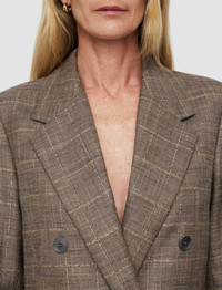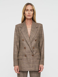 The Castel Wool Bamboo Jacket is a double-breasted, slim fit jacket. Crafted from a blend of wool and bamboo yarn, which delivers a lightweight, breathable and durable quality. It features a melange check pattern and has an ultra-smooth hand feel. - Designed for a slim fit - Double-breasted - Front flap pockets - Inside pocket - Lined - Shoulder padding - Product code: jp0017251252 - Escargot Melange Taupe SIZE ADVICE - Model wears size FR 36/UK 8/EU 34/US 4/DE 34/IT 40/JP 7 CARE & MATERIALS Discover the Care Guide, a guide to help you to care for your garments. - 58% Virgin wool 42% Viscose - Do not wash - Do not bleach - Do not tumble dry - Iron low temperature setting - Dry clean
